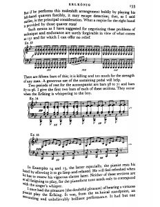Gerald Moore details exactly how he recommends a pianist and singer should study, practice, and learn Schubert’s Erlkönig in his book “Singer and Accompanist – The Performance of Fifty Songs”.